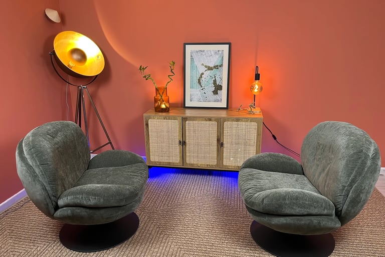 Un espace simple, calme et fonctionnel, pensé pour discuter, créer et enregistrer dans de bonnes conditions.